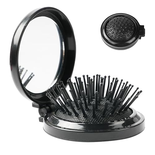 Material de alta calidad: nuestro cepillo de pelo redondo plegable está hecho de material ABS suave, duradero y resistente, con alta elasticidad, tacto suave. El peine está diseñado con partículas de puntos de masaje, que pueden masajear eficazmente la cabeza, lo que te proporciona una experiencia de usuario cómoda Fácil de usar: peine de airbag de alta elasticidad, solo tienes que utilizar el pulgar para empujar la parte inferior hacia arriba en el peine para desplegar, listo para usar. Las cerdas suaves son adecuadas para la mayoría de tipos de cabello, como cabello seco, cabello mojado, cabello largo, corto, cabello liso, rizado, etc. Diseño plegable: el cepillo de pelo redondo de viaje adopta un diseño compacto y ligero, el tamaño es de solo 2.6 x 2.9 in/2.56 x 2.87 pulgadas, lo suficientemente pequeño para un fácil transporte y almacenamiento; viene con un espejo, por lo que siempre puedes mantener una imagen hermosa Ampliamente utilizado: nuestro cepillo de pelo plegable con espejos es adecuado para la mayoría de las ocasiones, ya sea una bola de maquillaje, uso diario o viajes. Puede caber fácilmente en tu bolsillo, cartera o bolso, lo que te permite tener un maquillaje facial limpio y encantador y peinado en cualquier momento y en cualquier lugar El paquete incluye: el paquete viene con 2 mini peines plegables redondos, hay dos colores para elegir, negro o rosa. Este práctico peine también es perfecto como regalo para tu novia, hija o colega