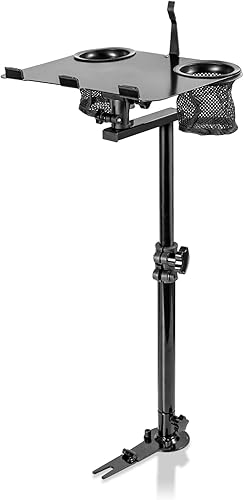 El K-005B1 viene con el soporte mejorado sin perforación para la instalación sin perforaciones. La bandeja incluye dos portavasos de malla y dos juegos de correas de velcro. El conector ajustable de cabeza en T se inclina hacia adelante y hacia atrás; sólido y fiable para usos a largo plazo Un soporte de pantalla ajustable protege la pantalla; ofrece el mejor ángulo de visión conveniente para ti La altura se puede ajustar de 18.5 a 24 pulgadas
