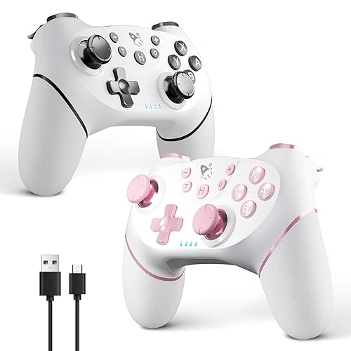 AceGamer Wireless Pro Controller for Nintendo Switch/Lite/OLED/Switch 2/PC, 2 pack, Dual Vibration/Turbo/Ergonomic ! (Black&White) negro/blanco