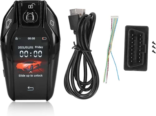 Especificación: Tipo de artículo: Pantalla LCD Smart KeyFrame Material: Aleación de aluminioTamaño de la pantalla LCD: 2.0 pulgadas Resolución de pantalla: 240x320Idioma: Inglés Capacidad de batería de litio incorporada: 750mAhModelos aplicables: Universal para el coche original con el botón de arranque y parada del motor (no para con llaves mecánicas y enchufe) Cómo usar: Paso 1: Saca la placa principal de la llave original del coche, y suelda el arnés de conexión al interruptor de función de cada botón correspondiente a la llave original del coche de acuerdo con el diagrama esquemático en el manual.Paso 2: Después de completar la soldadura de la llave original del coche, conecte el otro extremo del cable de conexión al zócalo.Paso 3: Inserte el módulo OBD en la interfaz OBD debajo del asiento principal de conducción del automóvil.Lista del paquete: 1 x llave LCD inteligente 1 x cable de carga USB 1 x caja OBD 1 x llave Cable de conexión de chip 3 Tornillo (solo necesita 2, equipado con 3) 1 manual (idioma español no garantizado). Nota: 1. Se recomienda encontrar un mecánico profesional para la instalación. Viene con un manual en inglés.2. Si tienes algún problema durante la instalación o el uso, no dudes en ponerte en contacto con nuestro personal de servicio al cliente y resolveremos todos los problemas por ti. 3. Soporte 17 idiomas, el valor predeterminado es el inglés, si los clientes necesitan otros idiomas, comuníquese con nuestro personal de servicio al cliente.