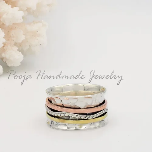 Solid 925 Sterling Silver Handmade Spinner Ring Silver Spinner Ring Boho Spinner Band Made In India