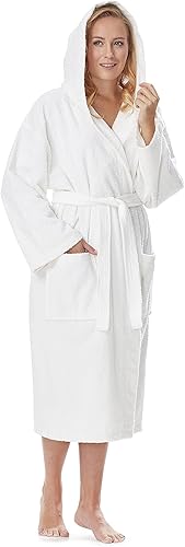 Arus Bata de baño clásica con capucha para mujer de algodón turco