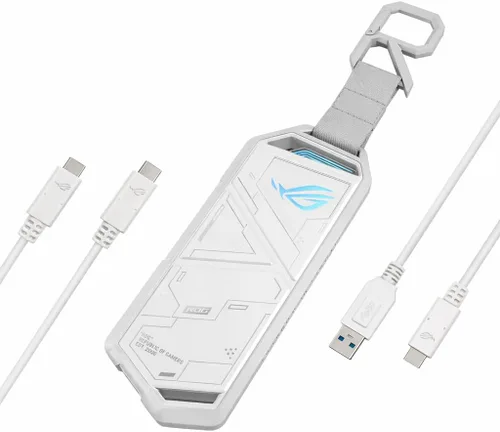 USB-C 3.2 Gen 2x1 para velocidades de hasta 10 Gbps Soporta SSD M.2 PCIe NVM Express con factor de forma 2230/2242/2260/2280 Instalación innovadora y fácil de usar sin destornilladores La carcasa de aleación de aluminio y las almohadillas térmicas ofrecen una disipación de calor agresiva Exclusivo soporte protector colgante incluido Cables dobles USB-C a C y USB-C a A incluidos El diseño futurista cuenta con efectos de iluminación ASUS Aura Sync