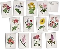 Postales florales vintage – 24 postales de flores antiguas – 12 tarjetas de ilustración de libros retro botánicos surtidos impresas en cartulina de