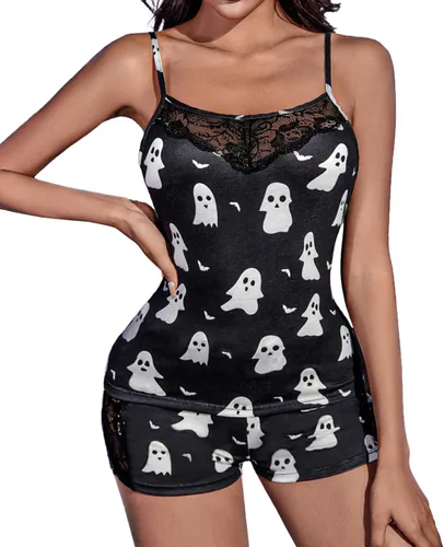 Avidlove - Conjunto de pijama de encaje para mujer, set de pijama con pantalones cortos y manga corta, ropa para dormir