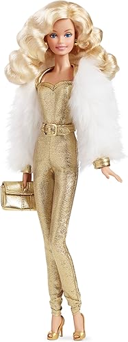 El glamour está de vuelta a lo grande con Golden Dream Barbie Doll. ¡Es la segunda muñeca de la serie Superstar Forever que cuenta con muñecas con cabello grande, gran moda y grandes sueños! Inspirada en las muñecas Superstar lanzadas a lo largo de los años 70, 80 y 90, cada muñeca cuenta con un aspecto ultra glamoroso combinado con modas modernas y aerodinámicas. Captura toda la nostalgia de la época con una muñeca vestida con un mono metálico dorado que tiene un cinturón en la cintura y rematado con una chaqueta blanca recortada de felpa. Los accesorios incluyen pendientes dorados, un embrague metálico a juego y mulas doradas. Esta muñeca Superstar está lista para discoteca en la pista de baile en cualquier época. Incluye soporte de muñeca para exhibir. Los colores y decoraciones pueden variar.
