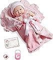 JC Toys La Newborn Muñeca bebé niña de 15 pulgadas de vinilo anatómicamente correcta con traje blanco y rosa y accesorios de lujo Diseñada