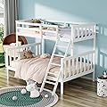 Litera de metal con escalera, litera baja de tamaño matrimonial sobre matrimonial, con rieles de protección de seguridad para niños, adolescentes y