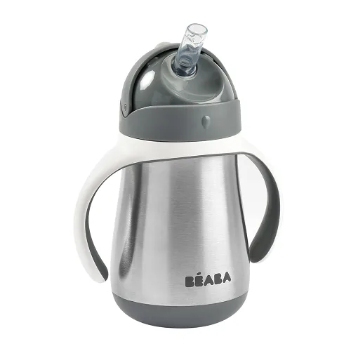 BEABA - Vaso para sorber con popote de acero inoxidable, vasos aislados a prueba de derrames con asas extraíbles, fabricado con acero inoxidable de
