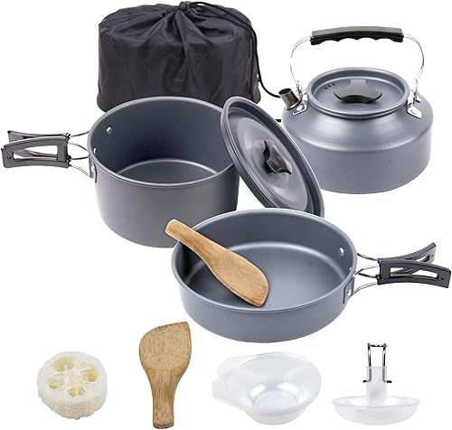 ¿Para qué sirve Outdoor Camping Cookware Set with Pot Pan and KettleCamping Cookware Mess Kit Portable Hiking Backpacking Cooking Pot Set Survival Cooking Gear?