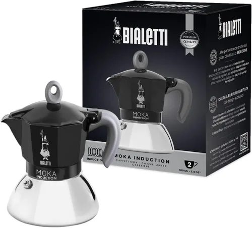 Bialetti - Moka Induction, Moka Pot, Adecuado para todo tipo de placas, 2 tazas de espresso (2.8 onzas), 3.0 fl oz, negro