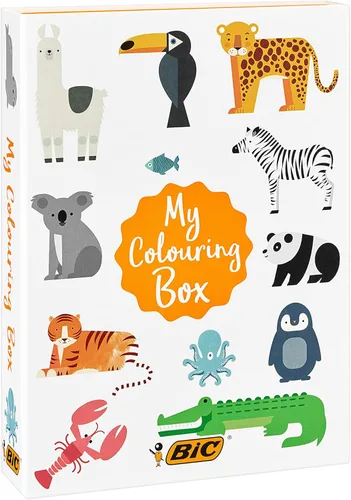 Bic My Colouring Box - Kit para colorear con 12 marcadores, 18 lápices de colorear, 6 pegamentos con purpurina, 1 libro para colorear y 36
