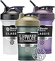 BlenderBottle Classic V2 - Botella mezcladora perfecta para batidos de proteínas y preentrenamiento, 20 onzas (paquete de 3), color negro, azul