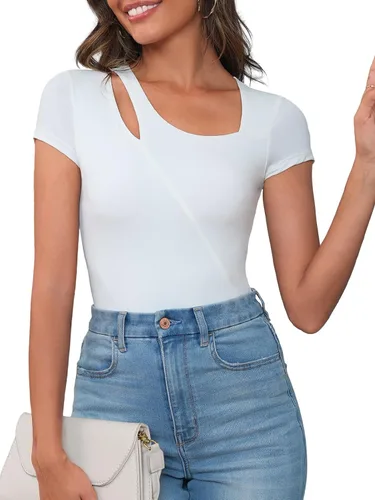 Body sexy para mujer, cuello cuadrado, manga corta, leotardo