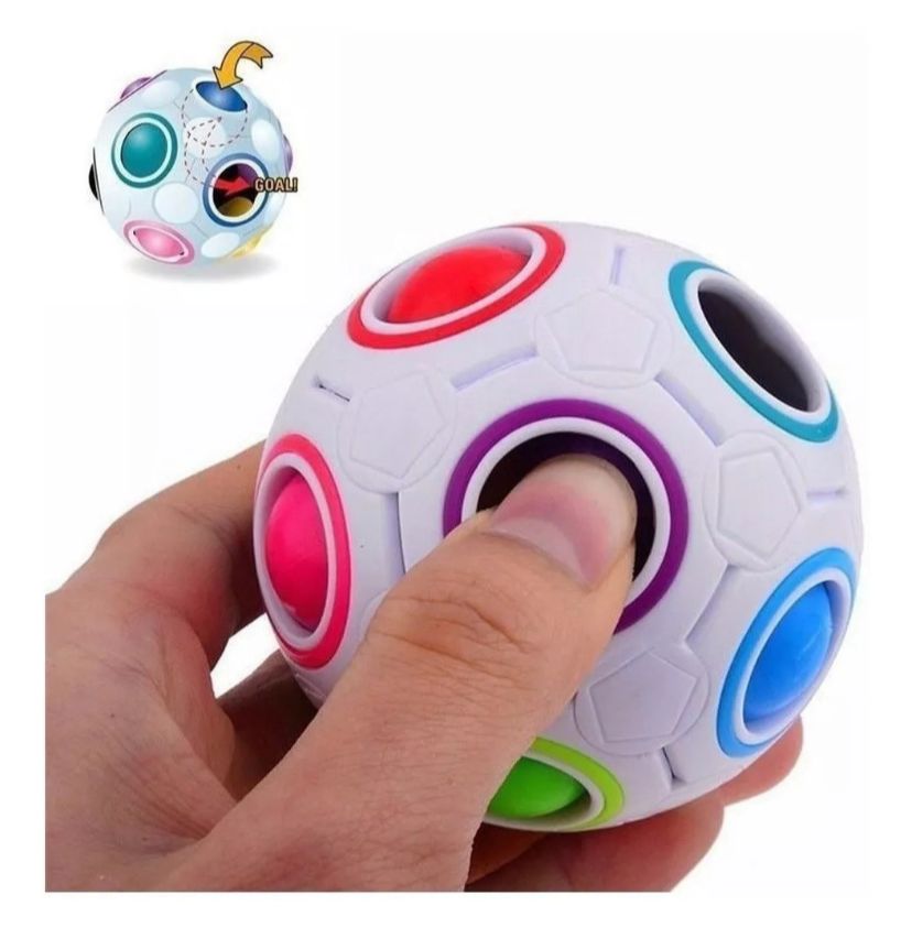 BroMocube La bola arcoíris tiene una forma de una colorida bola antiestrés con 12 agujeros y 11 bolas coloridas en el interior, uno de los agujeros blancos es la posición de salida para pasar la bola a una posición diferente.