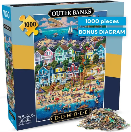 EXPERIENCIA DE PUZZLING: Sumérgete en el día de playa de Outer Banks de Dowdle, repleto de coloridas cabañas, veleros y divertidos detalles de la costa. Relajante para comenzar, luego satisfactoriamente desafiante mientras conecta escenas diminutas, perfecto para la noche familiar, regalar, o una cita de rompecabezas. Tabla reciclada premium: hecha de materiales reciclados en tablero de rompecabezas premium con piezas entrelazadas resistentes que se unen para un ajuste seguro, por lo que las secciones se sujetan mientras ordenas, te mueves y construyes con confianza VIBRANT DOWDLE ART: La impresión de alta resolución mantiene los colores llamativos y los detalles nítidos, ayudándote a detectar personajes, carteles y momentos costeros que hacen que esta escena sea divertida de descubrir pieza por pieza. DIAGRAMA DE REFERENCIA INCLUIDO: Incluye un diagrama de referencia grande para ayudarle a planificar y confirmar áreas difíciles. El tamaño final es de 26.75 x 19.75 pulgadas, una pantalla impresionante una vez completa. Desafío para desarrollar habilidades: Diseñado para mayores de 8 años y niveles de habilidad expertos, apoyando la habilidad de concentración, destreza, habilidad de paciencia, habilidad de resolución de problemas y conciencia espacial a través de una actividad sin pantalla que puede compartir.