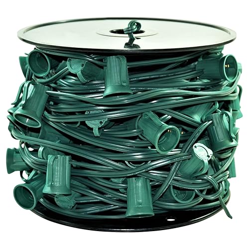 C9 - Carrete de alambre verde navideño con carrete a granel, espacio de 12 pulgadas, base intermedia (C9/E17), SPT-1 (100 pies)
