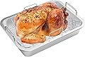 Onlyfire Sartén para asar con estante en U – Asador de acero inoxidable para hornear, sartén rectangular de lasaña de pavo de 16 pulgadas para asar