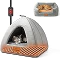 Cama térmica para gatos de interior, 2 en 1 con cueva para gatos y cama cálida con almohadilla térmica integrada de 22 W, lavable a máquina, muebles