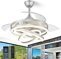 Ventilador de techo retráctil de 42 pulgadas, ventiladores de techo con luces, motor de CC silencioso, 6 velocidades, 3 cambios de color para