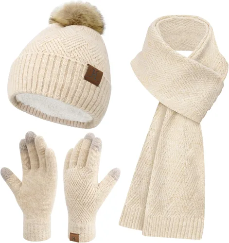 Pregunta sugerida sobre Conjunto de gorro de punto cálido para mujer, bufanda larga, guantes para pantalla táctil, con forro polar, gorro de calavera con pompones, regalos ¿Este producto sí me sirve para lo que necesito?
