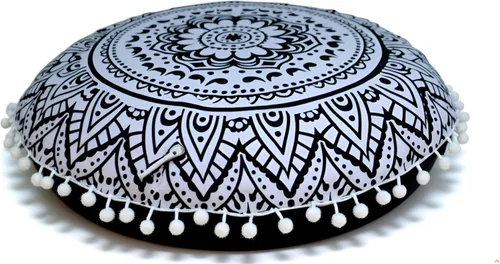 CRAFT KALA Funda de cojín redonda grande de 32 pulgadas para el suelo bohemio, funda de puf boho, funda de cojín de mandala para meditación, cojines