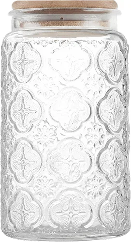 Comodidad de almacenamiento más encanto decorativo: estos bonitos recipientes de 35 onzas están hechos de vidrio grueso de alta calidad, que no solo tienen diseños exquisitos y encantadores, sino que también son resistentes y duraderos. El anillo de sellado de silicona dentro de la tapa de bambú evita que entre aire, por lo que el contenido se puede mantener seco durante mucho tiempo. Diseñado para contener prácticamente cualquier cosa: Puedes usar estos recipientes herméticos para organizar tus armarios o despensas. Además de guardar especias, café, dulces, galletas, harina y azúcar, también son adecuados para la lavandería, el baño y el aseo para guardar detergente para la ropa, cápsulas de lavandería, bastoncillos de algodón, almohadillas de algodón, palillos de cepillo de dientes y cualquier otra cosa. Dimensiones para los contenedores de vidrio: 19 cm * 9.8 cm; Capacidad: 1000 ml (35 fl oz) de líquido o 300 g (10 oz) de granos de café; El diámetro de la abertura de la botella es de aproximadamente 7.5 cm (2.95 pulgadas). Peso: 580 g (con tapa). Este tamaño es muy adecuado para una variedad de pequeños propósitos de almacenamiento. Versátil: además de generosas capacidades de almacenamiento, estos frascos de vidrio también son lindas piezas decorativas para el estilo doméstico de varios temas. Son igualmente adecuados para decorar despensas, comedores, hoteles, bares, oficinas, todo tipo de ocasiones y entornos. Excelente servicio postventa: Siempre estamos buscando maneras de mejorar tu vida y asegurar tu satisfacción. Por favor, no dudes en ponerte en contacto con nosotros si recibes un frasco roto o tienes alguna preocupación sobre nuestros productos. Los resolveremos lo antes posible