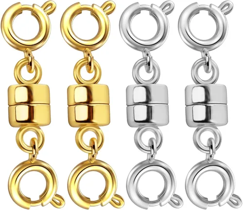 Los mejores cierres magnéticos para collar para joyas no deberían ser complicados. El extensor de collar de Dailyacc está hecho de plata o chapado en oro de 14 quilates. Sin níquel ni alergias. Más fuerte y más duradero. Nunca se decolora, oxida, deslustra y nunca volverá tu piel verde 4 collares magnéticos de doble cierre: L 1.07 pulgadas, profundidad 0.2 pulgadas. Solo 0.035 onzas de peso con imán fuerte. Ligero y seguro. Diseño flexible e interesante: nuestros cierres dobles adoptan un diseño clásico de doble cabeza, que puede sujetar firmemente ambos extremos de los collares o pulseras, y pueden añadir fácilmente longitud adicional a tus joyas. Fácil de usar: simplemente ata tus collares o pulseras favoritos alrededor de los lados izquierdo y derecho del cierre. Pueden atraerse fácilmente y solo necesitas un segundo para colocarlos y quitarlos, por lo que podría ahorrarte mucho tiempo y energía, lo que te hará tener una buena experiencia Ampliamente utilizado: nuestros cierres y cierres de collar tienen un aspecto simple y elegante, es fácil de llevar con tu collar o como una extensión de un collar o una pulsera. Adecuado para hacer collares, pulseras, cadenas de tobillo u otras manualidades de joyería de bricolaje. Haz exquisitas manualidades de joyería como regalo para cada persona que amas o cualquier ocasión especial.