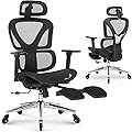 Silla de oficina ergonómica con reposapiés, silla de computadora de oficina en casa de malla con reposacabezas ajustable y brazos 3D, altura del