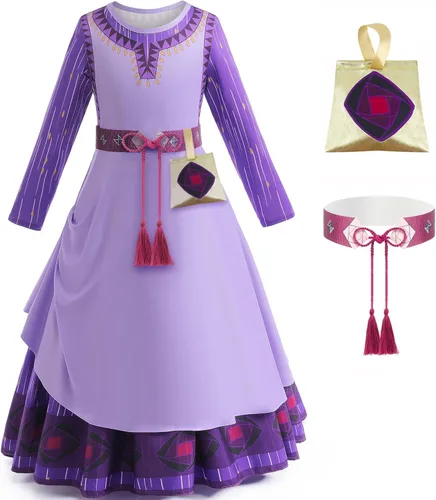 Disfraz morado para niñas, vestido de fiesta de cosplay de Halloween con accesorios