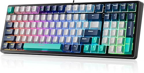 Diseño compacto de 98 teclas, ahorra un 18% de espacio para el mouse: a diferencia del teclado de tamaño completo, nuestro teclado mecánico con cable USB C ahorra más espacio en el escritorio, pero mantiene la almohadilla numérica que es esencial, proporcionando una mayor productividad para el trabajo diario y los juegos que el teclado del 60% por ciento. Además, el teclado mecánico MK98 para juegos cuenta con un área de dirección separada, que evita eficazmente las prensas accidentales. Interruptor rojo intercambiable en caliente, diseño de junta silenciosa: el interruptor rojo mecánico es intercambiable en caliente y puede soportar casi todos los interruptores de 3 o 5 pines. La velocidad predeterminada y el interruptor rojo suave tienen un diseño lineal y baja resistencia de resorte, lo que permite un disparo directo. Sus beneficios incluyen disparo rápido y velocidades de botón. Estas estructuras silenciosas Gask proporcionan una experiencia de carrera mecánica suave y silenciosa, que es perfecta para escribir en la oficina y jugar sin molestar a los demás. Iluminación RGB personalizable, bailando con ritmo musical: hasta 9 colores y 20 modos de efectos de retroiluminación RGB como color sólido, serpentina, carreras de caballos y neón para que coincida con tu estilo de juego y diseño de escritorio. 16.8 millones de colores y 5 niveles de brillo y velocidades están listos para elegir. Todos los parámetros de efecto de luz se pueden personalizar con el software adjunto, lo que le brinda la mejor experiencia de iluminación y mejora su precisión de escritura nocturna. Detalles ergonómicos, extremadamente cómodo: este teclado para jugadores adopta un diseño científico de teclas de escalera que mantiene tus brazos en el estado más natural para minimizar la fatiga de la mano para un uso prolongado. También viene con soportes traseros fuertes ajustables y plegables de 2 niveles para ofrecer tres ángulos de escritura para elegir. Las teclas PBT en forma de U proporcionan un mejor tacto con los dedos y resistentes al sudor. El diseño de teclas altas y bajas también mejora las experiencias cómodas. 【Compatible con sistema Dual WIN/MAC y servicio posventa 100% de retroalimentación】Este teclado mecánico de 98 teclas adopta un diseño de sistema dual WIN/MAC, que es directamente compatible con Windows (Windows 11, Windows 10, Windows 8, Windows 7, XP, etc.) y MAC OS. El interruptor del sistema está en la parte inferior del teclado para juegos. 18 meses de garantía y respuesta en 24 horas, EarlyLit no escatimará esfuerzos para proporcionar a cada cliente el mejor servicio. Si tienes algún problema, no dudes en ponerte en contacto con nosotros por correo electrónico o mensajes.