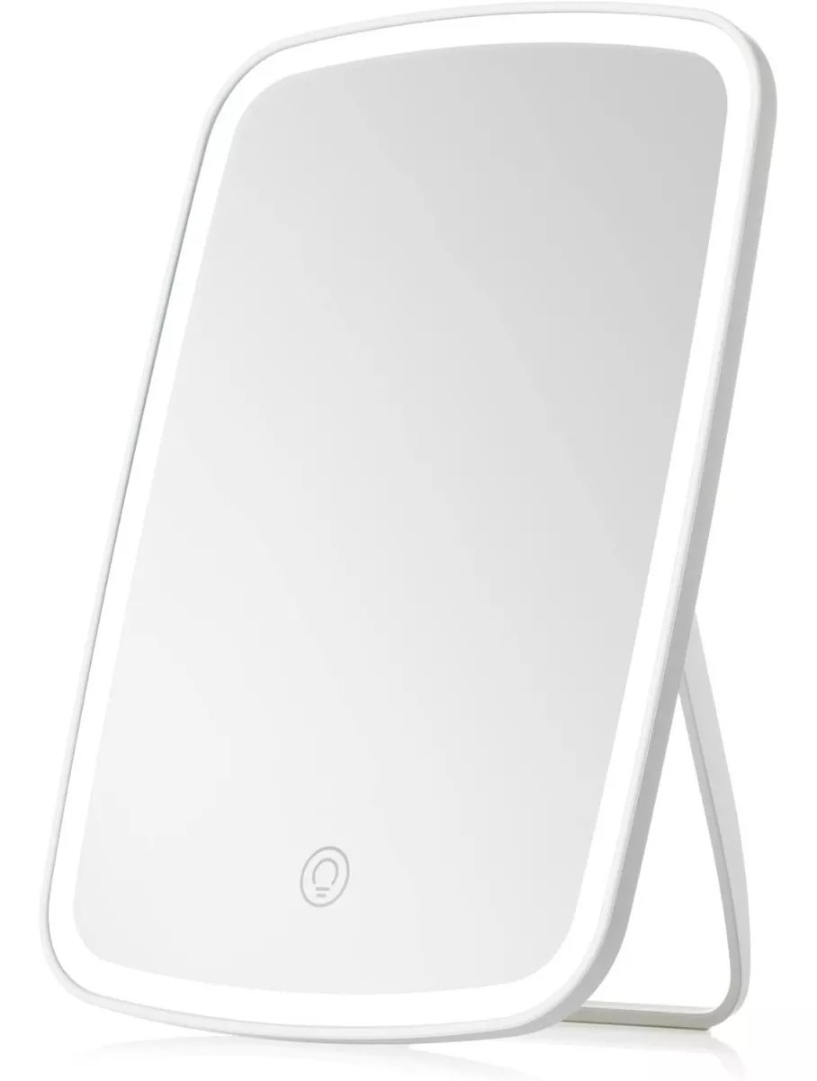 - Espejo de Maquillaje con Pantalla Táctil y Brillo LED, Ajustable, Portátil, Recargable por USB.