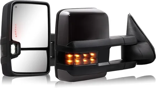 Compatibilidad(1): 2003-2006 Sierra 1500; Escalade ESV EXT; Avalanche 1500, 2500; Suburban 1500, 2500; Tahoe; Yukon XL 1500; Yukon XL 2500; 2003-2004 Silverado 2500; Sierra 2500; Sierra 1500 HD Ajuste (2): 2003 Silverado 1500 HD; 2005-2007 Silverado 1500 HD clásico, GMC Sierra 1500 HD; 2003-2007 Silverado 1500 clásico, 2500HD, 3500; 2003-2007 Sierra 2500 HD, Sierra 3500 Funciones: Cristal eléctrico ajustable + Desempañado con calefacción + Luces LED de señal de giro en espejo y en la parte trasera + Luz de marcha atrás + Cristal doble (cristal plano + cristal convexo) + Telescópico y plegable manual Calidad excelente: Nuestros espejos retráctiles fabricados según estrictos estándares de control de calidad, no se sacudirán ni vibrarán al conducir. Hecho de bases de aluminio ultra resistentes, carcasas pintadas en negro; código de pintura 8555 Lo que obtienes: un par de espejos de remolque, incluyendo el lado izquierdo y el lado derecho