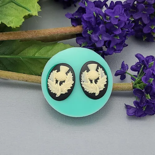 Molde de silicio para plantas de cardo 2 cameos flexibles para manualidades, joyas, resina, álbumes de recortes, arcilla polimérica Molde de silicona hecho a mano El molde flexible es fácil de usar con resina, arcilla polimérica, arcillas metálicas, arcillas terrestres, uretano, cera y cualquier material de fundición o empuje. Tamaño del cameo: 0.984 x 0.709 in Cantidad: 1 unidad