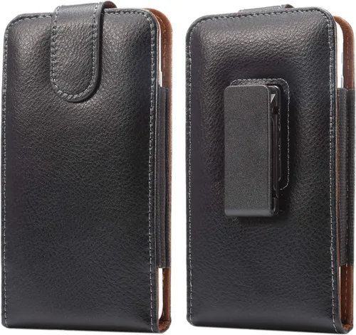 Soporte giratorio vertical para teléfono compatible con la mayoría de teléfonos inteligentes de pantalla grande de 5.7 a 6.5 pulgadas (simetría desnuda o Otterbox, parachoques de TPU, funda delgada de armadura), como Samsung Galaxy A55 A54 5G A53 A52 A51 A50 A34 5G A33 A31 A30 A10 A2 32 S25 + S24+ S23+ S22+ S21+ S10+ S9+ S8+ S21 FE S20 FE Note 10, iPhone 17 Pro Max iPhone 16 Pro Max iPhone 15 Pro Max 14 Pro Max 13 Pro Max 12 Pro Max XS Max 11 XR 8 Plus 15 Plus, Motorola Moto G Fast G8 Potencia G Power 20 21 G8 Plus G7 Plus G7 Power Moto E Edge, Google Pixel 7 6 Pixel 4a 5G y otros tamaños similares. El clip giratorio para cinturón te permite engancharlo en tu cinturón y cambiarlo de posición vertical a horizontal, especialmente cuando estás sentado o conduciendo. La funda de cuero duradera para cinturón ofrece la protección perfecta para tu teléfono contra arañazos, descargas y suciedad. Dimensión exterior aproximada: 6.3 x 3.3 x 1.0 pulgadas, dimensiones interiores aproximadas: 6.2 x 3.3 x 0.8 pulgadas. El paquete incluye: 1 funda de piel negra. El cierre ligero y magnético mantiene tus teléfonos seguros y en su lugar, mantiene tus manos libres. Perfecto para viajes, entrenamiento, senderismo, camping, uso diario y otras actividades al aire libre.