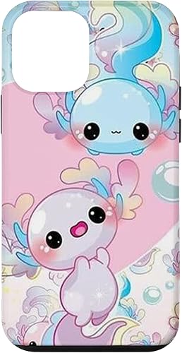 Funda Kawaii para iPhone 12 mini con diseño de ajolotl azul y rosa