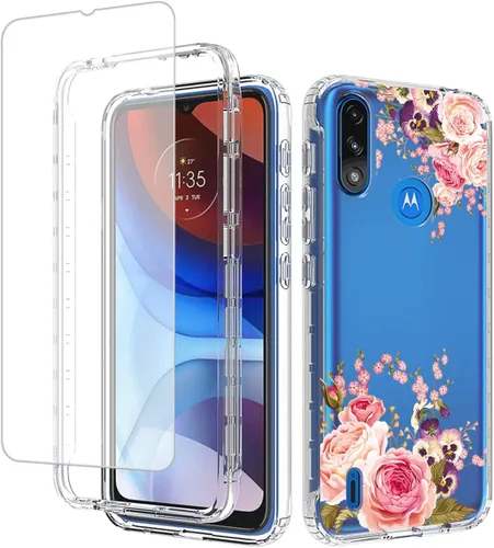 Viene con protector de pantalla de vidrio templado, compatible con Motorola Moto E7 Power XT2097-5 XT2097-6 XT2097-7 / Moto E7i Power XT2097-12 XT2097-13 Funda para Moto E7 Power con diseño floral único que hace que tu teléfono se vea lindo, bonito y lujoso, y proporciona a tu teléfono más elegancia y llamativo. La funda para teléfono es perfecta como regalo del día de San Valentín o como regalo especial para mujeres y niñas, como para ti, tu novia, esposa, hija, amiga en su cumpleaños, día de San Valentín o cada día festivo y aniversario. Funda de teléfono celular para Motorola E7 Power, carcasa de protección de cuerpo completo con cubierta trasera transparente de diseño floral. La parte trasera está compuesta de TPU transparente suave y delgado, revela la elegancia natural de tu teléfono mientras te defiendes contra daños. Y se adapta muy bien y deja que tu teléfono se vea lindo. Funda para teléfono Moto E7i Power, dos fundas (parte delantera de policarbonato duro + parachoques de TPU que absorbe los golpes) proporcionan a tu teléfono una protección eficaz y dos fundas de diseño a presión hacen que sea rápido y fácil de instalar o quitar en cuestión de segundos Funda Moto E7 Power para niñas, fácil acceso a todos los botones, puertos y conectores sin necesidad de quitar. Diseño recortado para altavoz, pantalla, cámara y puertos