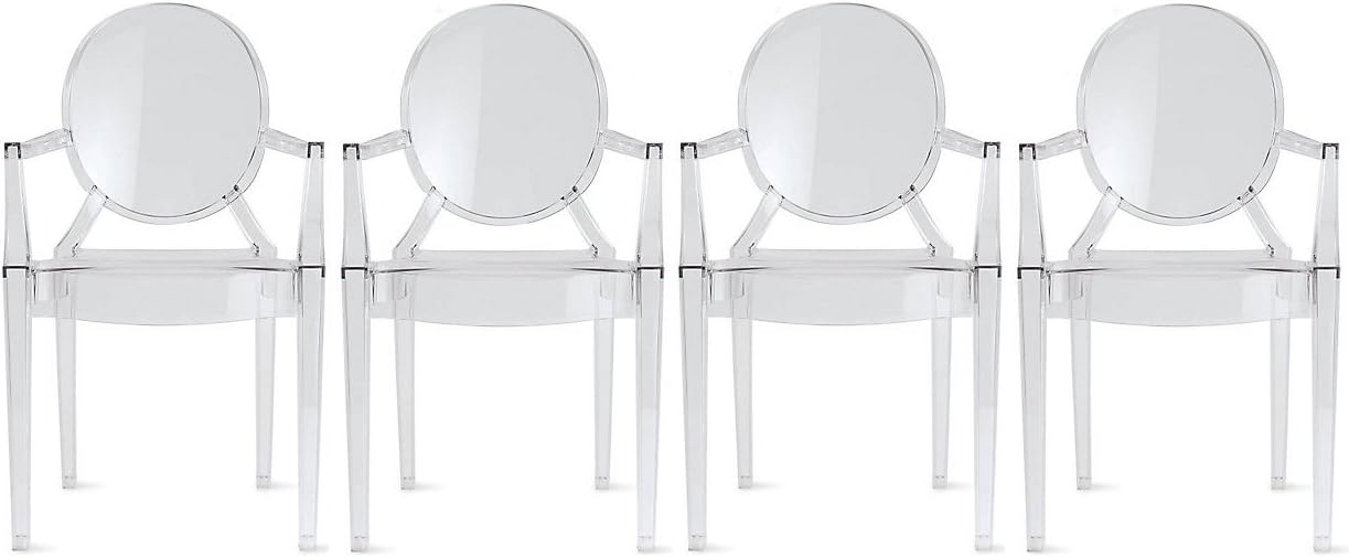 2xhome - Juego de 4 sillones Louis Ghost de diseño moderno con sillas de comedor de plástico transparente de policarbonato