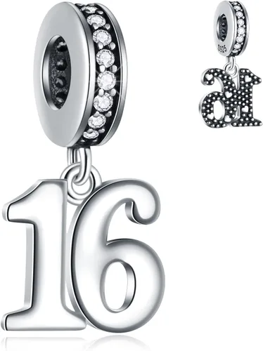 GLOWDAS Abalorios de cumpleaños de 10 a 25 28 30 31 33 35 36 40 45 50 55 60 65 70 75 80, abalorios de plata de ley 925 para pulseracollar de