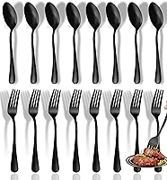 Juego de tenedores y cucharas negros, juego de 16 tenedores y cucharas de acero inoxidable de grado alimenticio superior, juego de cubiertos