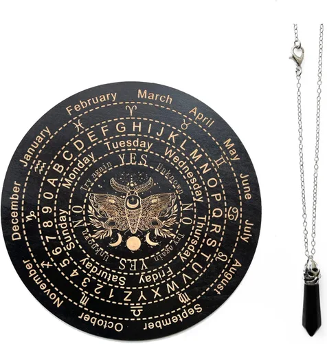 [Diseño divertido]: la superficie de adivinación de madera está diseñada con texto, incluyendo un astrolabio y descripciones de texto como mes, horóscopo, semana, letras, números, sí, no, etc. para ayudarte a tomar decisiones y darte una experiencia particularmente interesante Material de alta calidad: la adivinación de la placa de péndulo está hecha de madera de alta calidad, que es fuerte y duradera, no tóxica e inodora, con superficie lisa y patrones exquisitos impresos, que es confiable y seguro para principiantes en brujería; el collar de cristal está hecho de cristal negro, que es clásico y moderno, y también es tu ropa diaria, hermosa decoración de bolsos, pantalones Información sobre el tamaño: el tablero de péndulo de madera es de aproximadamente 9.8 pulgadas de diámetro, ligero y fácil de llevar, se puede colocar en cualquier lugar que desee, como dormitorio, estudio, sala de estar, oficina, etc. También se puede colocar en casa como decoración, añadiendo un ambiente misterioso y atrayendo fácilmente la atención de todos [Ámbito de aplicación]: La adivinación de la placa de péndulo es perfecta para principiantes en brujería, puede ayudarnos a tomar decisiones; también se puede utilizar como un regalo para tus seres queridos en bodas, compromisos, aniversarios, cumpleaños, Navidad, Día de la Madre, Acción de Gracias, etc., también se puede colocar en tu hogar, oficina, habitación, etc. para hacerte más encantadora y misteriosa, para mostrar tu belleza [Combinación perfecta]: obtendrás: 1 tablero de péndulo de adivinación radiestesia y 1 collar de cristal negro con cadena chapada en plata, el cristal negro ayuda a limpiar la energía negativa y traer buena suerte, un juego completo para satisfacer tus necesidades y ayudarte a tomar decisiones, te trae experiencias más divertidas