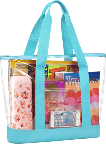 Handy Laundry Bolsa transparente cierre de cremallera, correa larga para el hombro, ribete de tela. Zipper Closure, Long Shoulder Strap, Fabric