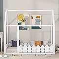 Base de cama individual de alta calidad: esta cama Montessori de tamaño individual está fabricada pensando en la calidad de primera calidad, la cama individual está hecha de marco de madera de pino maciza probada de calidad, lo que garantiza la estabilidad y durabilidad. Dimensión total: 78 pulgadas de largo x 41.7 pulgadas de ancho x 39.2 pulgadas de alto. Capacidad de peso de la cama: 250 libras. Bonito marco de cama tamaño individual para niños: la cama única para niños pequeños con diseño de cabecera en forma de casa añade encanto y carácter al dormitorio de los niños. Puedes poner tiendas de campaña o luces brillantes, para que tus hijos tengan su propio espacio privado en el que tus hijos puedan jugar al escondite con sus amigos o hermanos. Seguro y mejor sueño: el mejor regalo para niños y ayuda a hacer la transición a una "cama para niños grandes" más fácil. Cama de suelo Le da a tu hijo una sensación de independencia e inspira exploración, lo que es conveniente para que los niños gateen o jueguen sin preocuparse por el riesgo de caerse. No requiere somier: la cama infantil individual para niños está fabricada con un marco de madera de pino resistente que puede mejorar la estabilidad y durabilidad. Las láminas están incluidas, simplemente coloca tu colchón (colchón no incluido), esta cama de suelo es una buena opción para decorar la habitación con diversión. Fácil de montar: nuestra cama de madera viene con instrucciones detalladas (idioma español no garantizado) y piezas numeradas, para que se pueda montar paso a paso cómodamente. Se recomiendan dos personas al montar esta cama. La satisfacción de los clientes es nuestra máxima prioridad, ponte en contacto con nosotros si tienes alguna pregunta.