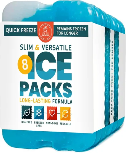 Healthy Packers Ice Packs for Lunch Boxes & Coolers - Freezer Packs - Original Cool Pack Cooler Accessories for Beach, Camping & Fishing Slim &