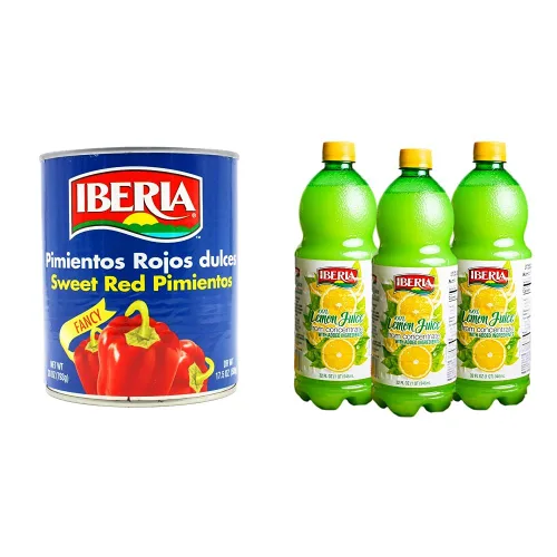Sabroso: los pimientos Iberia contienen solo ingredientes naturales: pimientos rojos frescos seleccionados a mano conservados en un vinagre picante. Jugo 100% de limón: el jugo de limón 100% Iberia hace que sea fácil agregar un delicioso sabor a limón a salsas, adobos o incluso refrescos o jugo sin cortar y exprimir limones frescos.