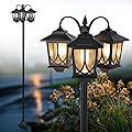 3-Head Solar Lamp Post Light, 73" Solar Lights Outdoor Waterproof, 60Lm 3000K Pathway Lights for Garden, Lawn, Yard