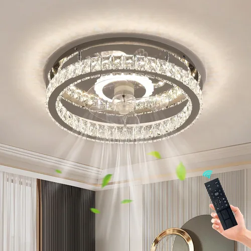 Ventilador de techo 2 en 1: este ventilador de techo combina funciones de iluminación y flujo de aire en uno, con 6 velocidades y 3 temperaturas de color (cálido, fresco, neutro) para satisfacer tus diferentes necesidades. Diseño inteligente y moderno: este ventilador de techo tiene un diseño moderno y elegante que se adapta a una variedad de estilos de decoración del hogar. La luz y el ventilador se pueden controlar por separado y a través del control remoto / aplicación, lo que te permite ajustar fácilmente la velocidad del ventilador y los ajustes de luz desde cualquier lugar de la habitación, lo que te proporciona opciones de uso más flexibles. Ventilador de techo de perfil bajo: este ventilador de techo está diseñado para instalarse al ras del techo, perfecto para habitaciones con techos bajos, como dormitorios, salas de estar, cocinas y otros espacios, fácil de instalar y bajo ruido del motor garantiza un ambiente cómodo y tranquilo. 【Acentos regulables y de cristal】El anillo de luz LED utilizado en este ventilador de techo es de bajo consumo y de larga duración, proporcionando una luz brillante y consistente. El cristal K9 añade elegancia al espacio. 【Servicio posventa】KINDLOV otorga gran importancia a la experiencia del cliente. Si encuentra algún problema durante la instalación o el uso del ventilador montado, puede ponerse en contacto con nosotros en cualquier momento y le proporcionaremos una respuesta en un plazo de 24 horas.