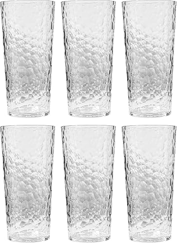 KOXIN-KARLU Mixed Drinkware - Vasos acrílicos de plástico de 21 onzas con diseño martillado, juego de 6 unidades transparentes