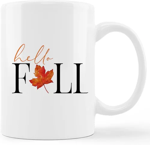 kunlisa Tazas de otoño, taza de café de otoño, taza de café de otoño con texto en inglés "Fall Hello Maple Leaf", taza de café de otoño, accesorios