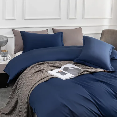 L LOVSOUL Juego de funda de edredón tamaño Queen, 100 % algodón, suave y transpirable, 90 x 90 pulgadas, color azul